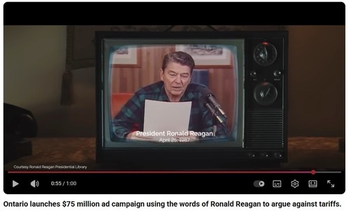 이런 광고가 방영되자 트럼프 대통령은 지난달 23일 캐나다가 레이건 전 대통령의 발언을 악의적으로 편집해 '가짜 광고'를 만들었다면서, 이 광고가 트럼프 행정부 관세 정책의 합법성을 검토 중인 미 대법원의 결정에 영향을 미치려는 시도라고 주장했다.