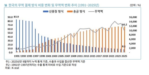 보고서는 스테이블코인을 활용한 무역 결제의 확산이 단기적 기술 변화가 아니라 과거 신용장(L/C)에서 송금(T/T)으로 결제 패러다임이 전환된 것과 유사한 구조적 변화의 시작점이 될 것이라고 전망했다.
