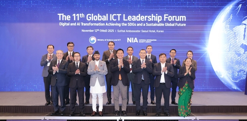 ▲ 한국지능정보사회진흥원(NIA)은 12일 서울 송파구 소피텔 엠버서더 서울 호텔에서 제11회 글로벌 ICT 리더십 포럼을 열었다. 포럼은 공적개발원조(ODA) 사업의 일환으로 한국의 디지털 정책과 경험을 공유하고 개발도상국의 정보통신기술(ICT) 역량 강화를 지원하기 위해 2015년부터 매년 열리고 있다. 이번 포럼은 '디지털·인공지능(AI) 전환을 통한 지속가능발전목표(SDGs) 달성과 글로벌 미래 실현'을 주제로 열렸으며 네팔, 우즈베키스탄, 몽골, 라오스, 키르기스스탄, 타지키스탄, 부탄, 베트남 대표단과 세계은행 관계자가 참석했다.