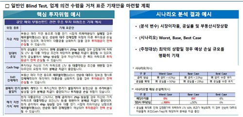 펀드 신고서를 작성할 때도 투자자 눈높이에 맞지 않는 투자위험 기재 방식을 대폭 개선하고, 금리, 공실률 등 시장 상황 변화 시 예상 손실액 등도 기재하도록 한다.