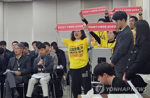한편 이날 회의 시작과 동시에 현장 방청에 참여한 일부 환경단체 회원들이 '고리 2호기 수명연장 심사무효' 띠를 들고 "심의를 하면 안된다", "전문가만 의견을 내는 게 정당하냐"며 항의하는 일이 발생했다.