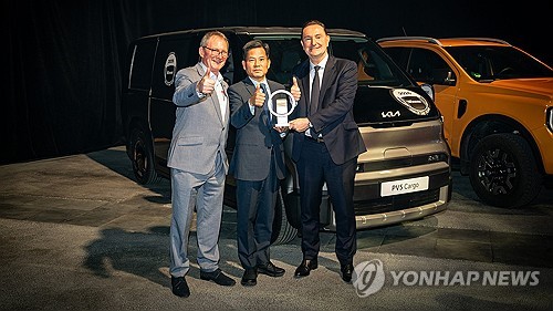 (서울=연합뉴스) 홍규빈 기자 = 기아는 19일(현지시간) 프랑스 리옹에서 열린 세계 상용차 박람회인 솔루트랜스에서 PV5가 '2026 세계 올해의 밴'을 수상했다고 20일 밝혔다.