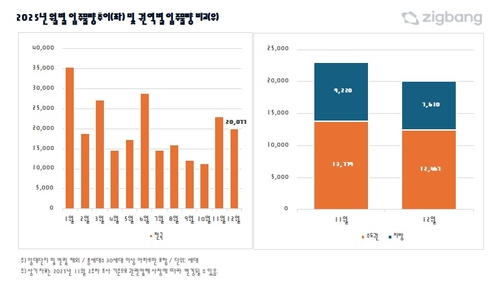 아울러 직방은 내년 전국 입주 예정 물량이 17만7천407가구(한국부동산원 청약홈 데이터 기준)로, 올해(23만9천948가구) 대비 약 26% 감소할 예정이라고 전했다.