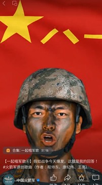 영상은 군인이 "만약 오늘 전쟁이 일어날 경우 내 대답은 바로 이것"이라고 외친 뒤 군가가 흐르는 가운데 중국군 실전 훈련 장면 등을 소개하는 내용이다.