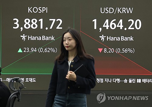 (서울=연합뉴스) 이민영 기자 = 코스피가 26일 상승 출발해 장 초반 3,880대를 나타내고 있다.