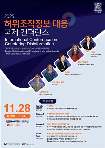 특히 경제협력개발기구(OECD), 국제팩트체킹네트워크(IFCN), 호주통신미디어청(ACMA) 등 관계자들이 참여해 "허위조작정보 대응 및 정보무결성 강화: 이해관계자의 역할"을 주제로 의견을 나눈다.