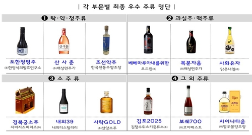 (세종=연합뉴스) 송정은 기자 = 중소기업 주류 12종이 국세청이 개최한 '2025년 K-술 어워드'에서 최종 우수 주류로 선정됐다.