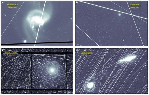 연구팀은 위성의 반사광은 같은 궤도 공간을 사용하는 허블우주망원경 같은 우주 기반 관측시설의 관측 이미지에 선형 흔적을 남길 수 있다며 이전 연구들은 지상 천문 관측에 대한 위성의 영향은 다루었지만, 우주망원경에 미치는 영향은 간과돼 왔다고 지적했다.