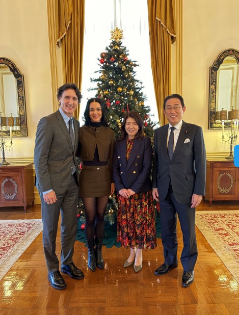 (도쿄=연합뉴스) 경수현 특파원 = 쥐스탱 트뤼도 전 캐나다 총리가 연인 사이로 알려진 미국 팝스타 케이티 페리와 일본을 방문해 기시다 후미오 전 일본 총리 부부와 만났다.