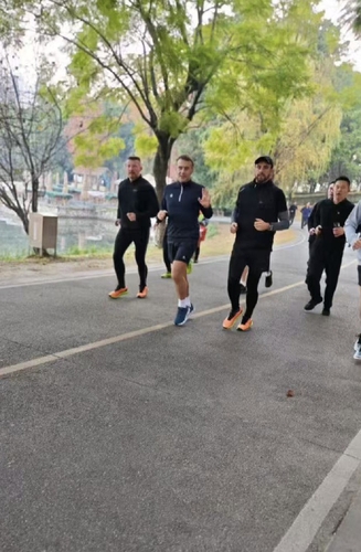 '방중 3일차' 마크롱 조깅 모습 SNS '화제'…쓰촨대도 찾아