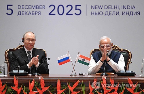(하노이=연합뉴스) 박진형 특파원 = 블라디미르 푸틴 러시아 대통령과 나렌드라 모디 인도 총리가 5일(현지시간) 정상회담을 갖고 인도의 러시아산 석유 수입을 중단하라는 도널드 트럼프 미국 행정부의 압박에 맞서 석유·원자력 등 에너지 부문에서 양국 협력을 강화하기로 합의했다.