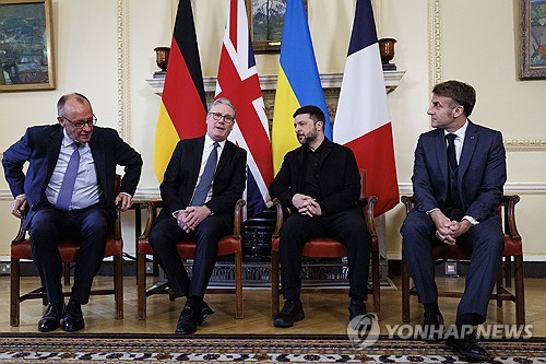 젤렌스키 대통령은 이날 영국 런던 다우닝가 총리실을 찾아 키어 스타머 영국 총리, 에마뉘엘 마크롱 프랑스 대통령, 프리드리히 메르츠 독일 총리와 약 2시간 30분에 걸쳐 회의를 했다.