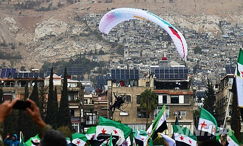 (서울=연합뉴스) 김연숙 기자 = 시리아 '피의 독재자' 바샤르 알아사드 독재정권의 철권통치가 막을 내린 지 꼭 1년을 맞은 8일(현지시간) 현지에선 축제 분위기가 펼쳐졌다.