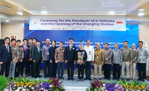 (서울=연합뉴스) 임성호 기자 = 한국자동차연구원(한자연)은 9일(현지시간) 인도네시아 자카르타의 '한-인니전기차협력센터'(IKEVC)에서 '인도네시아 온실가스 감축 e-vehicle 시스템 구축' 사업에 따른 전기차 인도 및 복합충전소 개통식을 열었다고 밝혔다.