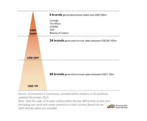유로모니터는 작년 온라인 판매액이 100만달러 이상을 기록한 K뷰티 브랜드는 87개에 이른다고 발표했다.