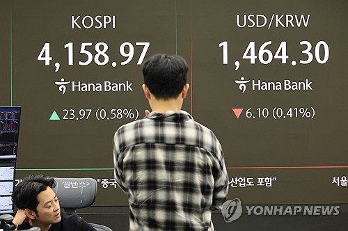 이날 오전 9시 10분 현재 코스피는 전장보다 22.51포인트(0.54%) 오른 4,157.51을 나타내고 있다.