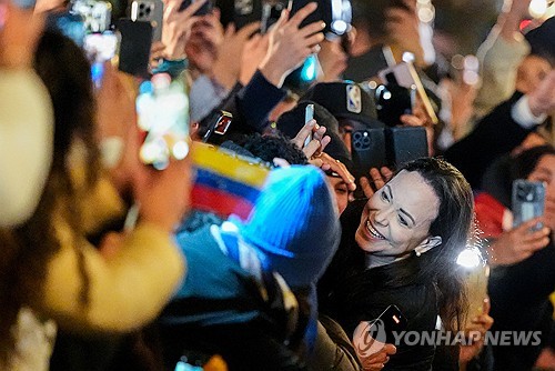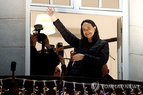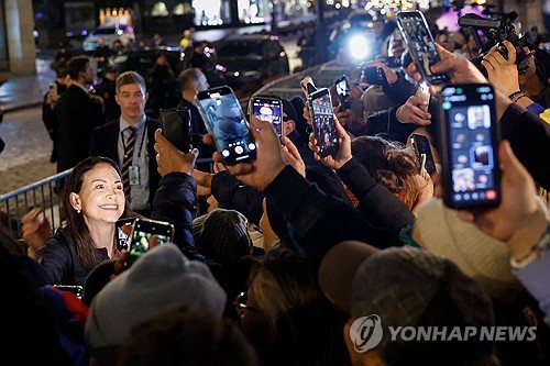 (서울=연합뉴스) 김연숙 김아람 기자 = 올해 노벨평화상 수상자인 베네수엘라 야권 지도자 마리아 코리나 마차도(58)가 노르웨이 오슬로에 도착, 11일(현지시간) 새벽 대중 앞에 모습을 드러냈다.