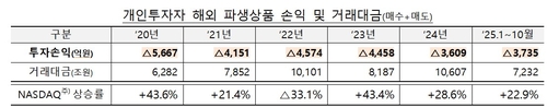 실제 2020년부터 올해(~10월)까지 개인투자자들은 해외 파생상품에서 연평균 약 4천490억원의 손실을 본 것으로 나타났다.