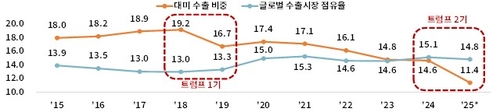 허슬비 한국무역협회 연구원은 "중국의 수출 전환이 집중되는 전략 시장에서 기술·품질 기반의 고부가가치화 전략으로 우리 수출의 경쟁력을 보완하고, 품목 다변화를 통해 경쟁 압력이 낮은 영역에서의 선제적 우위를 확보해야 한다"고 밝혔다.