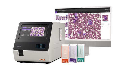 ▲ AI 기반 혈액 및 암 진단 전문기업 노을[376930]은 전혈구검사(CBC) 기능이 통합된 AI 기반 혈액분석 설루션 'miLab BCM' 신제품과 말라리아 진단 플랫폼 'miLab MAL'을 루마니아 주요 병의원 및 진단 기관에 공급하는 계약을 체결했다고 15일 밝혔다. 노을은 현재 출시한 3가지 모든 제품군을 동유럽 지역에서 판매할 수 있게 됐다고 전했다. 노을 임찬양 대표는 "유럽 시장에 차별화된 비즈니스 모델과 시장 접근 전략으로 큰 규모의 공급 계약을 연이어 성사할 수 있었으며, 이를 바탕으로 내년에는 인접 국가 및 유럽 전역으로 시장 확장 속도를 더욱 가속화할 계획"이라고 말했다.