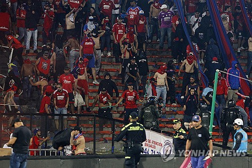 (멕시코시티=연합뉴스) 이재림 특파원 = 콜롬비아에서 프로축구 컵대회 결승전 직후 발생한 양 팀 팬 간 물리적 충돌로 경찰관을 포함한 59명이 다쳤다고 현지 일간 엘에스펙타도르와 엘티엠포가 18일(현지시간) 보도했다.