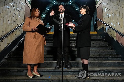 (워싱턴=연합뉴스) 홍정규 특파원 = 미국 최대도시(인구 약 850만)이자 세계 자본주의의 심장인 뉴욕시의 첫 무슬림 시장이며, 자칭 '민주사회주의자'인 조란 맘다니 신임 뉴욕시장이 새해 첫날인 1일(현지시간) 취임했다.