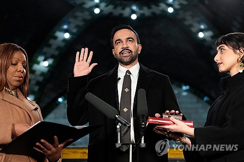 (워싱턴=연합뉴스) 홍정규 특파원 = 미국 최대도시(인구 약 850만)이자 세계 자본주의의 심장인 뉴욕시의 첫 무슬림 시장이며, 자칭 '민주사회주의자'인 조란 맘다니 신임 뉴욕시장이 새해 첫날인 1일(현지시간) 취임했다.