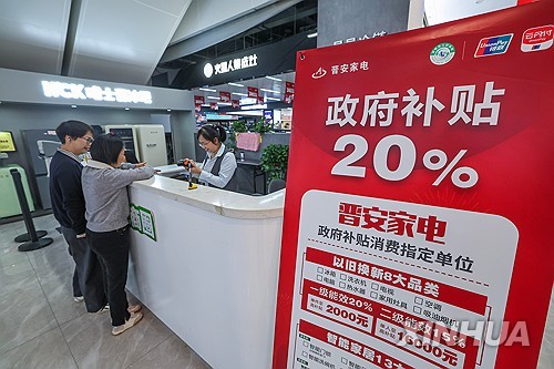 (서울=연합뉴스) 권수현 기자 = 중국이 내수 촉진을 위해 시행한 '이구환신'(以舊換新·낡은 소비재의 신제품 교체 시 보조금 지원) 정책으로 2조6천억위안(약 537조3천억원)의 소비효과를 본 것으로 나타났다.