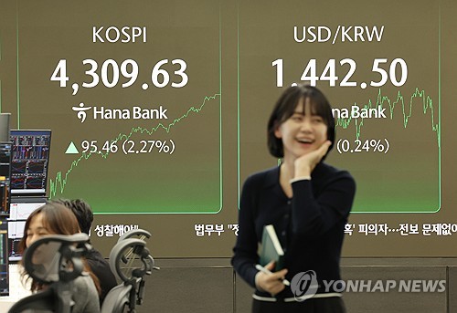 [속보] 새해 첫 거래일 코스피 장 중 한때 4,300선 돌파