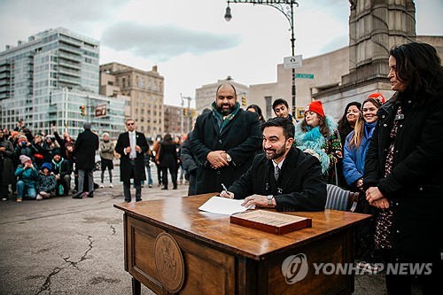 (서울=연합뉴스) 고일환 기자 = 성경 대신 쿠란에 손을 얹고 취임 선서를 한 조란 맘다니 뉴욕 시장이 업무 시작과 동시에 이스라엘과 갈등을 빚었다.
