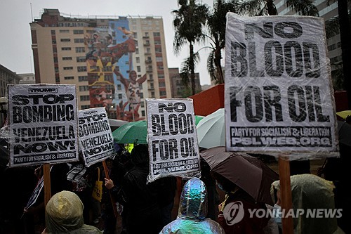 (서울=연합뉴스) 김아람 기자 = 미국 곳곳에서 도널드 트럼프 행정부의 베네수엘라 공격과 니콜라스 마두로 대통령 부부 체포에 항의하는 시위가 잇따랐다.