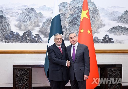 5일 중국 관영 신화통신에 따르면 왕이 중국공산당 중앙외사판공실 주임(외교부장 겸임)은 전날 베이징에서 이샤크 다르 파키스탄 부총리 겸 외교부 장관과 '제7차 중국-파키스탄 외교장관 전략대화'를 갖고 "현재 국제 정세는 혼란과 불안이 뒤엉키고 있으며 '일방적 괴롭힘' 행태가 갈수록 심해지고 있다"고 밝혔다.