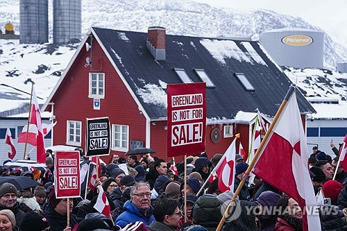 AFP·로이터통신에 따르면 이날 오후 그린란드 수도 누크에서 열린 시위에 옌스 프레데리크 닐센 총리를 비롯한 수천 명이 참가해 그린란드 국기를 들고 트럼프 대통령의 위협에 항의했다.
