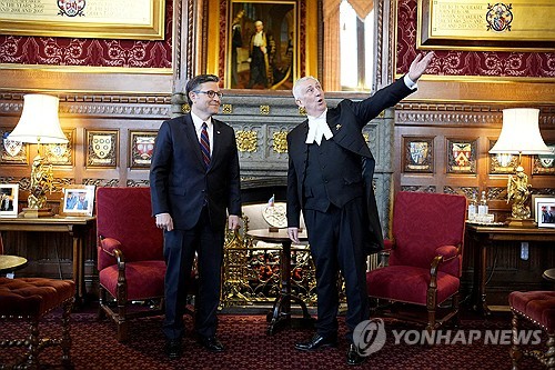 (런던=연합뉴스) 김지연 특파원 = 미국과 영국이 덴마크령 그린란드를 놓고 논쟁을 벌이는 가운데 마이크 존슨(공화·루이지애나) 미국 연방 하원 의장이 20일(현지시간) 영국 의회에서 연설하면서 양국의 우호 관계를 강조했다.