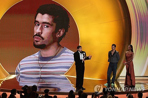 (로스앤젤레스=연합뉴스) 임미나 특파원 = 스페인어로 노래하는 푸에르토리코 출신 가수 배드 버니(Bad Bunny)가 그래미 어워즈의 최고 영예로 꼽히는 '올해의 앨범'(Album of the Year) 상을 거머쥐었다.