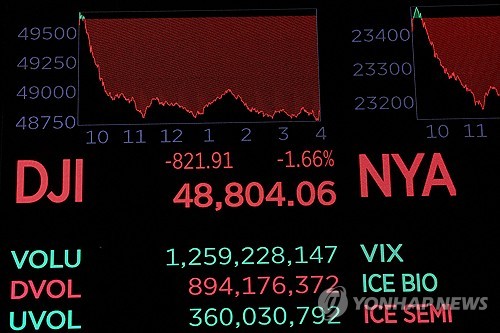 뉴욕 3대지수 하락…"관세 불확실성·AI발 사모신용 부실우려탓"