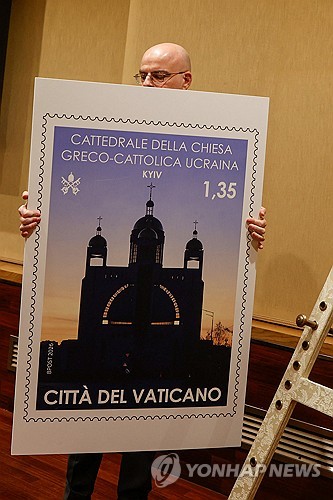 (바티칸=연합뉴스) 민경락 특파원 = 교황청이 26일(현지시간) 우크라이나 키이우 대성당의 모습이 담긴 새 우표를 공개했다고 로이터통신이 보도했다.