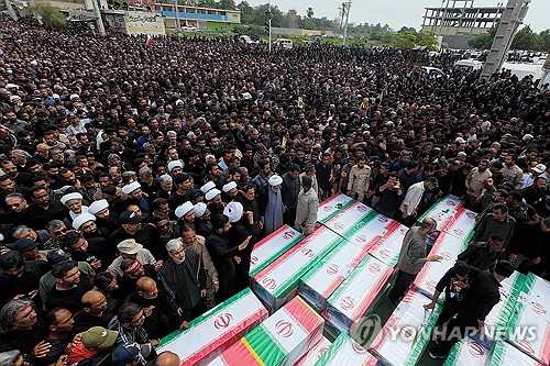 미 일간 뉴욕타임스(NYT)에 따르면 이날 이란 남부 미나브에서 열린 합동 장례식에는 수천 명의 조문객이 모여 애도를 표했다.