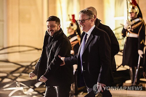 (런던=연합뉴스) 김지연 특파원 = 볼로디미르 젤렌스키 우크라이나 대통령의 영국 방문을 계기로 영국과 우크라이나가 드론 제조·공급을 비롯한 방공 협력을 강화하기로 했다.