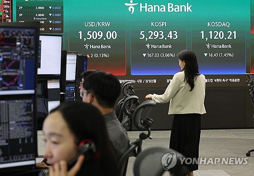 지수는 전장 대비 159.85포인트(2.93%) 내린 5,300.61로 출발한 이후 한때 4% 넘게 하락해 5,200대까지 밀렸다가 오후 들어 낙폭을 줄였다.