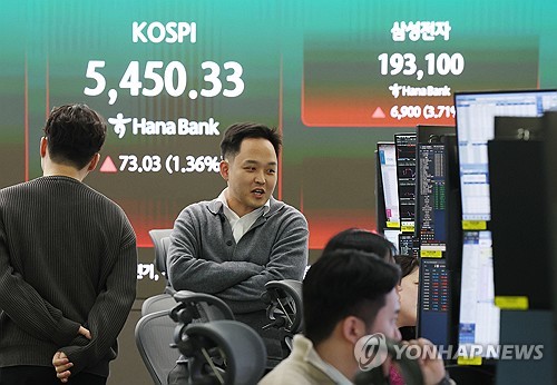 이날 코스피는 73.03포인트(1.36%) 오른 5,450.33으로 장을 마쳤다.