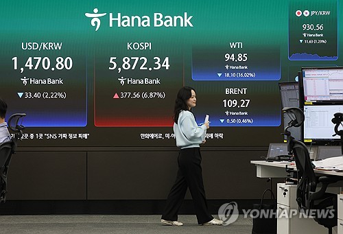 국내 증시 정규장 시작 전 이 같은 휴전 합의 소식이 전해지면서 코스피는 급등세로 출발해 6.87% 오른 5,872.34에 장을 마쳤다.
