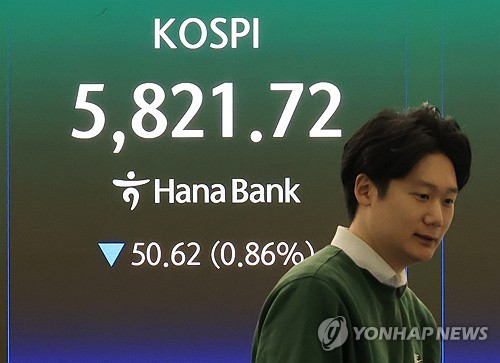 (서울=연합뉴스) 김유향 기자 = 코스피가 9일 하락 출발해 5,830대를 나타내고 있다.