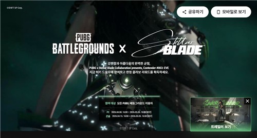 (서울=연합뉴스) 김주환 기자 = 크래프톤[259960]은 'PUBG: 배틀그라운드'에 신규 모드 '제노포인트(Xeno Point)'를 선보이고 국내 게임사 시프트업[462870]의 '스텔라 블레이드'와 협업을 진행했다고 9일 밝혔다.