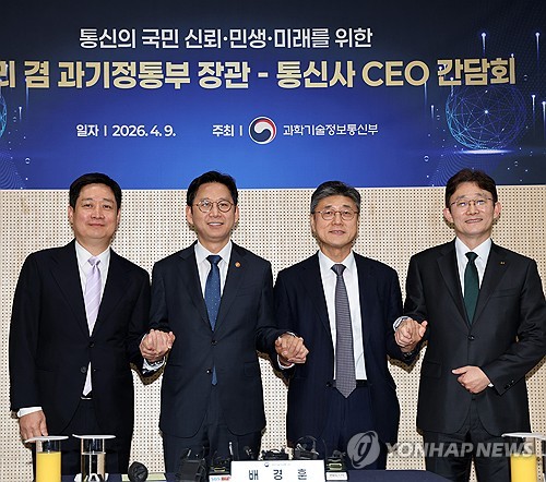 (서울=연합뉴스) 박형빈 오지은 기자 = SK텔레콤·KT·LG유플러스[032640] 등 이동통신 3사 대표는 9일 정부와의 간담회에서 보안 강화와 통신기본권 확대, 인공지능(AI) 투자 확대 등을 약속했다.