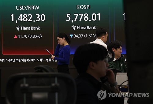 이날 코스피는 전날보다 94.33포인트(1.61%) 내린 5,778.01로 장을 마쳤다.