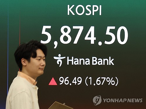 이날 오전 9시 1분 현재 코스피는 전장보다 100.37포인트(1.74%) 오른 5,878.38이다.