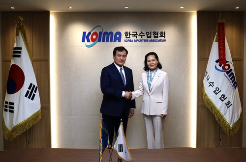 ▲ 한국수입협회는 지난 9일 서울 서초구 협회 대회의실에서 윤영미 회장이 알리벡 바카예프 카자흐스탄 외교부 차관과 면담하고 양국 교역 확대·협력 방안을 논의했다고 10일 밝혔다. 윤 회장은 오는 8월 협회가 수입사절단을 꾸려 카자흐스탄을 방문할 계획이라고 소개했고, 바카예프 대사는 정부 차원의 적극적인 협조를 약속했다. 셀바카예프 대사는 또 양국 시장 정보 교류 및 협회와 카자흐스탄 무역정책개발센터 간 유기적 협력 관계를 이어 나갈 것을 제안했다. (서울=연합뉴스)