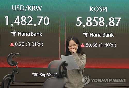 코스피는 80.86포인트(1.40%) 오른 5,858.87로 장을 마치며 전날의 하락분(-1.61%)을 대부분 만회했다.
