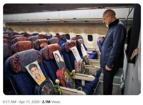 (서울=연합뉴스) 오수진 기자 = 미국과의 종전 협상을 위해 파키스탄으로 간 이란 대표단이 공습으로 대규모 사상자가 발생한 초등학교 희생자의 유품과 영정사진을 기내 좌석에 싣고 이동했다고 뉴욕타임스(NYT)와 타임스오브인디아 등이 11일(현지시간) 보도했다.